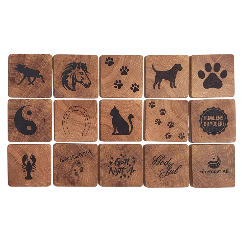 Pegusa Gård har möjlighet att brännmärka träprodukter. Brännmärkning sker med en laserbrännare och vi kan skapa bilder och text för att få en personlig touch av träprodukterna. Kontakta oss om ni har idéer på hur ni vill märka era skärbrädor, serveringsbrickor m.m. Företag och organisationer kan få sin logga brännmärkt på exklusiva presenter. Se exempel nedan: