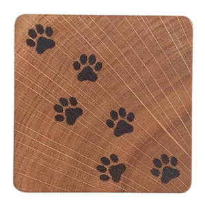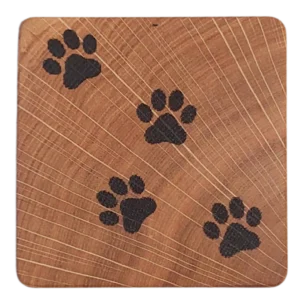 Unika handgjorda glasunderlägg i ek med brännmärkta motiv