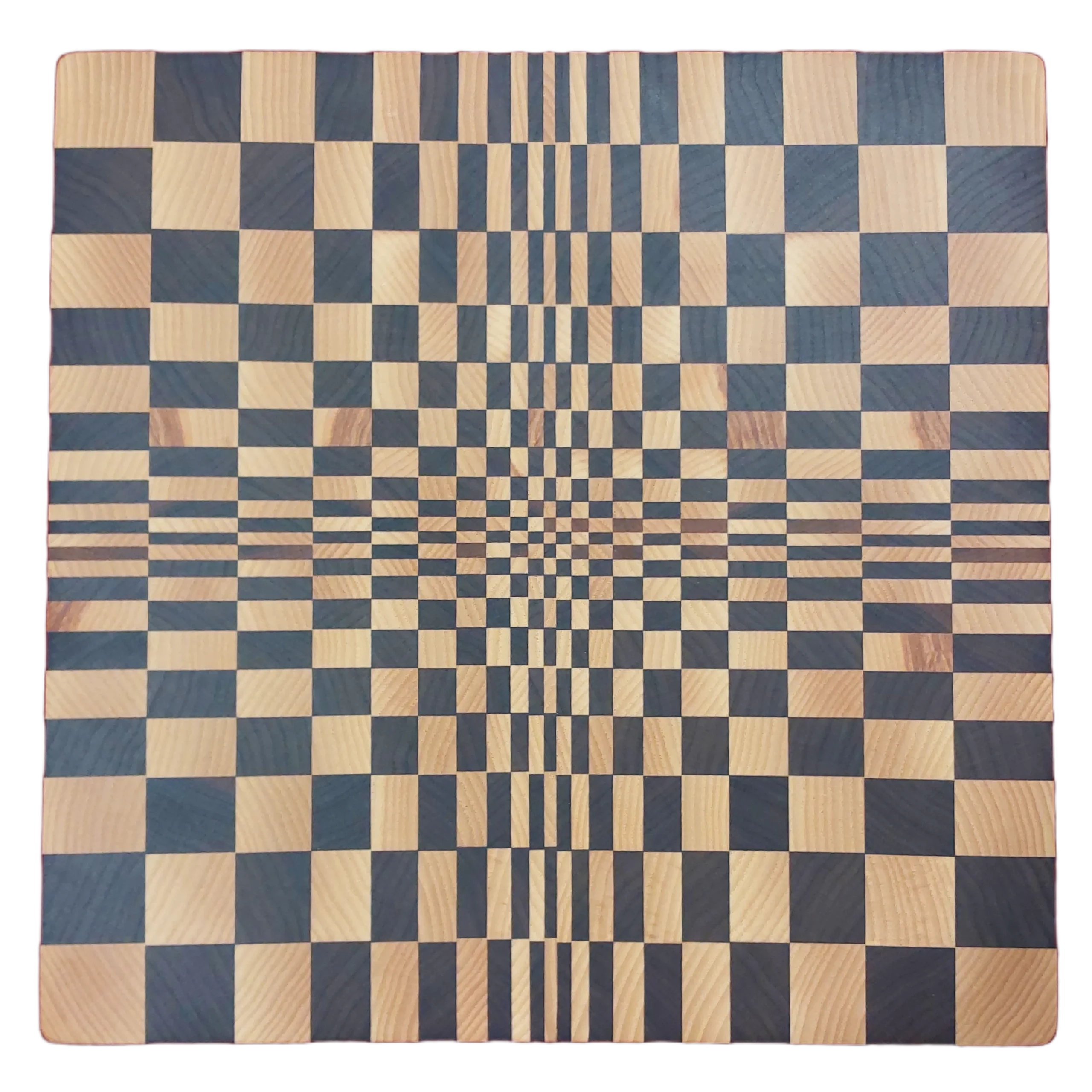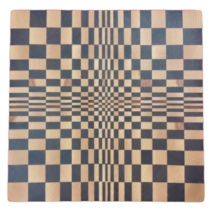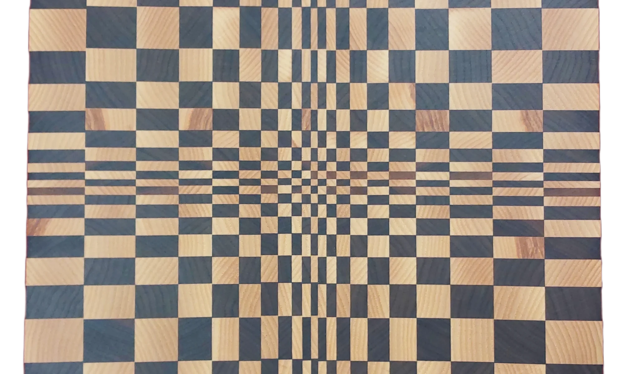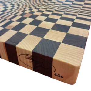 En klassisk ändträskärbräda med kalejdoskopiskt mönster som blir fantastisk som skärbräda eller uppläggningsbräda. Den är tillverkad av ask och valnöt.