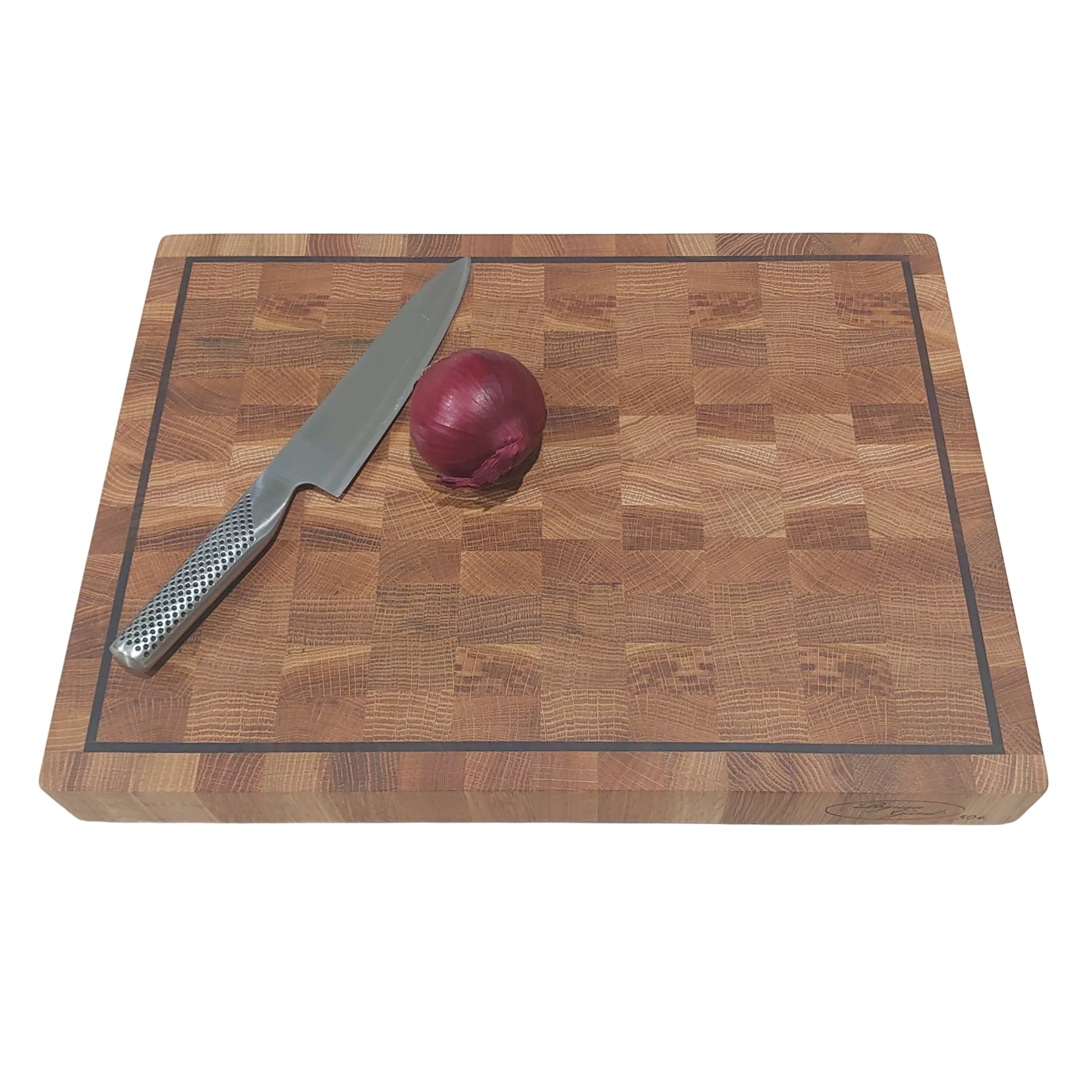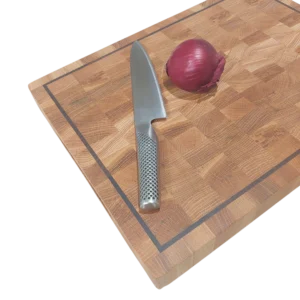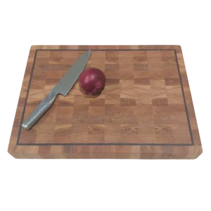 Upptäck vår eleganta skärbräda av exklusiv ek med en fin kant av valnöt. En perfekt kombination av funktion och hållbarhet. Denna ändträskärbräda är inte bara ett redskap, utan ett hantverk som förhöjer din matlagningsupplevelse och ditt kök. Ändträ ger överlägsen hållbarhet och motståndskraft och skyddar dina knivar.